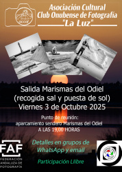 El próximo 25 de agosto tendremos una salida a Marismas del Odiel, para fotografiar puesta de sol, zona de salinas, mirador de flamencos, etc.