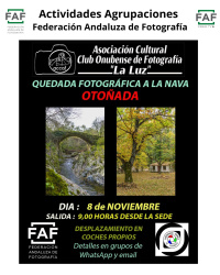 El próximo día 4 de Noviembre vamos a compartir un día de campo las dos Asociaciones de Fotografía de Huelva (HYSF y ACCOF).