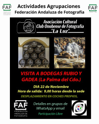 Retomamos la preparación de la visita guiada, con cata de vinos incluida, a las Bodegas Rubio de La Palma del Condado para el día 22 de noviembre a las 11,30 horas.