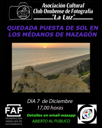 Tenemos una nueva actividad fotográfica el próximo DOMINGO 7 de diciembre.... Puesta de sol en los Médanos de Mazagón.